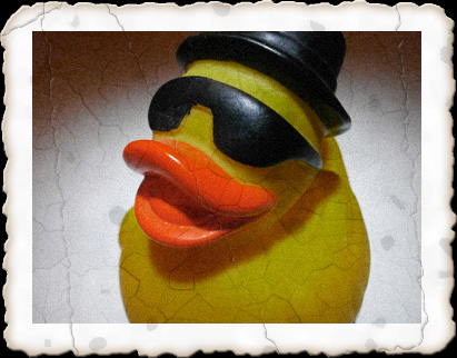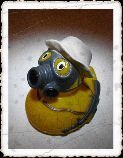 Ausgestattet ist die Geheimdienst Ente dafür natürlich mit einem umwerfenden Outfit, das jedes Frauenherz schneller schlagen läßt. Ein wichtiges Accessoir anderen Blatt Papier, oder besser, auf einer anderen Seite. An dieser Stelle sei nur soviel gesagt: denjenigen, die meinem duroplasten Astralleibchen Leben eingehaucht haben, recht herzlichen Dank!